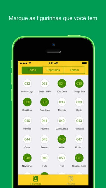 Com o app Figurinhas no seu iPhone você consegue controlar quais números estão faltando para completar o álbum oficial da Copa.