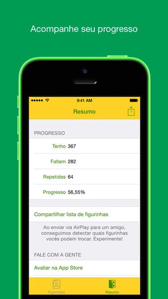 Marque as figurinhas coladas, as repetidas e confira as que estão faltando no seu caderno. O Figurinhas mostra um resumo do seu progresso e ainda permite usar o AirDrop para comparar a sua coleção com os seus amigos e ver quais números vocês podem trocar.